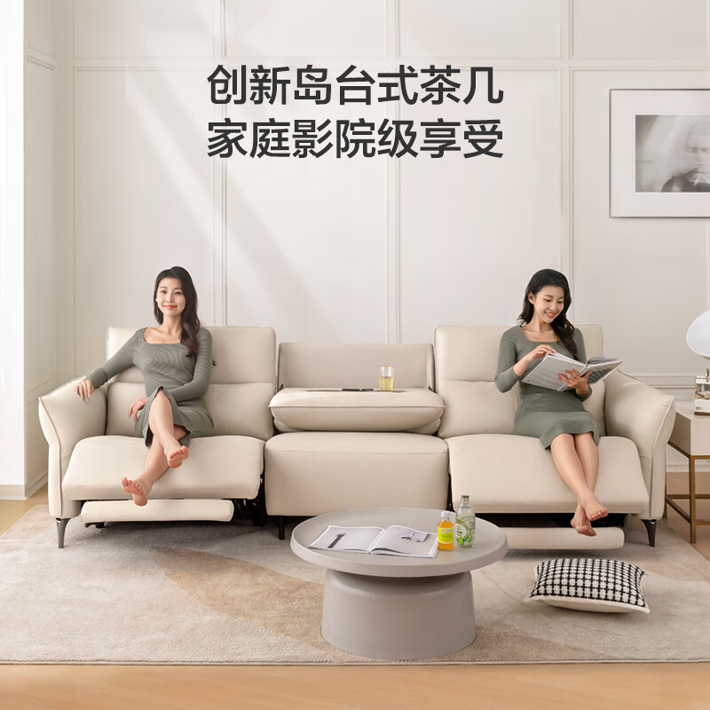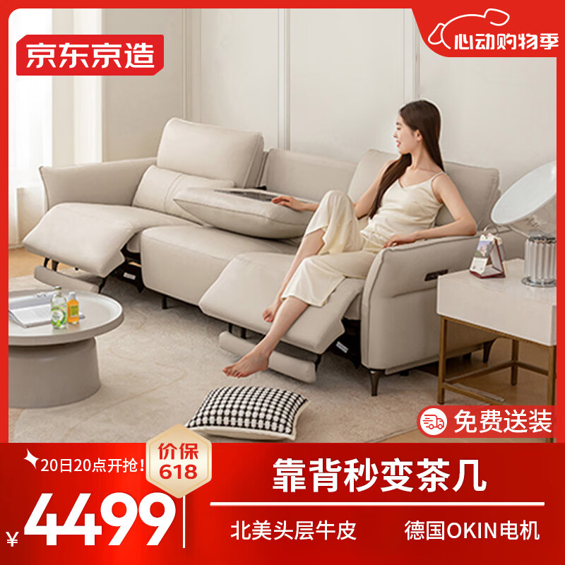 京东京造真皮沙发 靠背秒变茶几|头层牛皮|现代轻奢双电动 米色大三人SE13价格:4999.00元!
