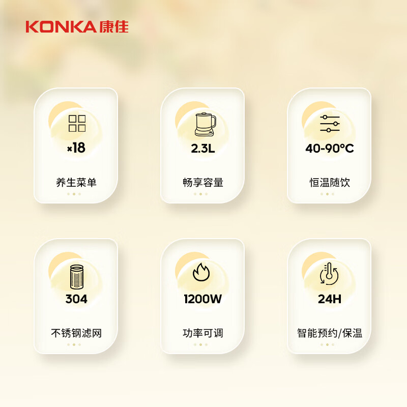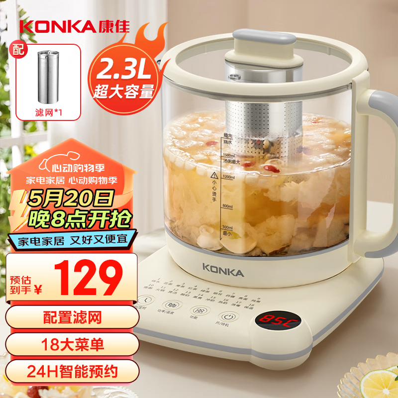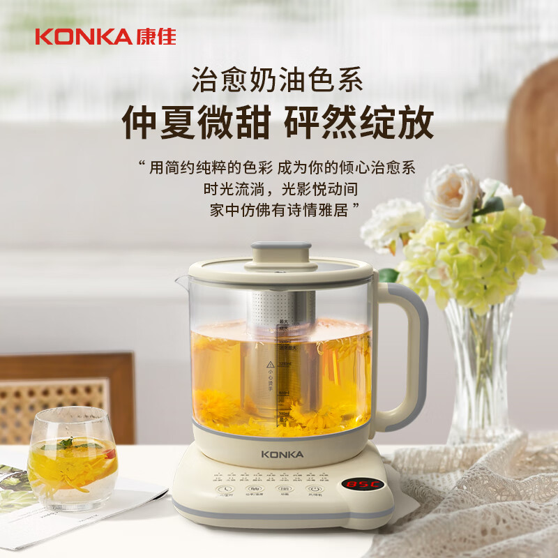 康佳(KONKA)养生壶 煮茶器 大容量玻璃保温开水烧水壶电热水壶 迷你玻璃煮茶壶2.3L KYSH-2308E-W(C)价格:129.00元!