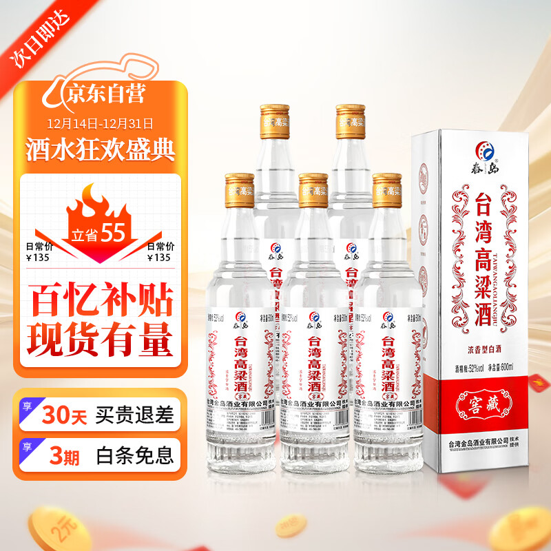 春岛台湾高粱酒窖藏纯粮食口粮酒送礼泡酒52度600ml浓香型白酒整箱6瓶价格:85.00元!