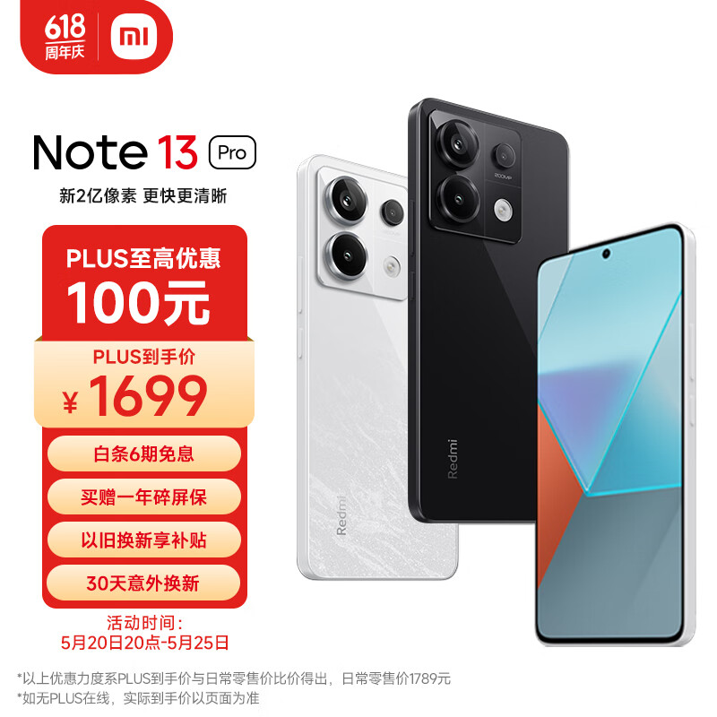 小米Redmi Note13Pro 新2亿像素 第二代1.5K高光屏 12GB+512GB 子夜黑 SU7 5G手机价格:1799.00元!
