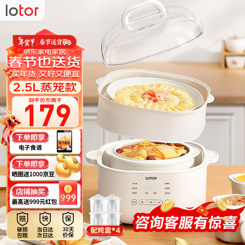 LOTOR小浣熊电炖锅电煮锅煲汤锅家用大容量隔水炖盅婴儿辅食锅电蒸锅煮粥锅年货年会送长辈蒸笼款价格:179.00元!