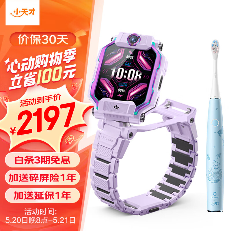 小天才儿童电话手表Z9豆蔻紫+牙刷蓝色价格:2297.00元!