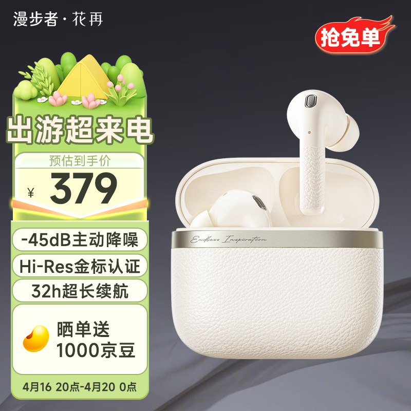 漫步者花再Evo Pro 真无线蓝牙耳机 45db主动降噪 金标认证 通话降噪适用苹果安卓入耳式耳机 贝母白价格:399.00元!