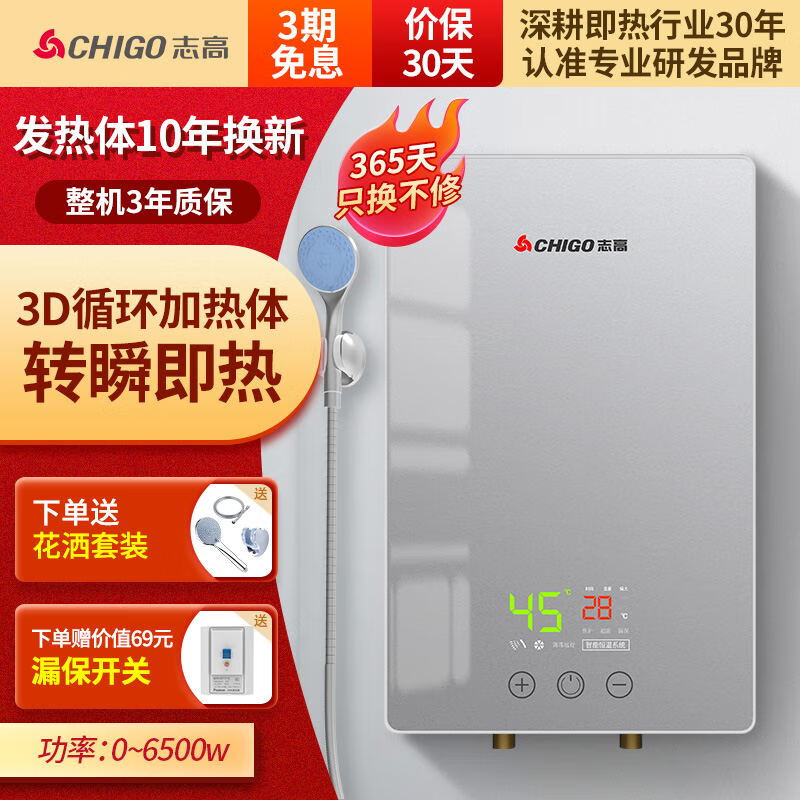 志高(CHIGO)即热式电热水器 6500W速热电热水器小厨宝省电家用集成洗澡免储水功率可调 银色 送漏保 KBR-B65价格:368.00元!
