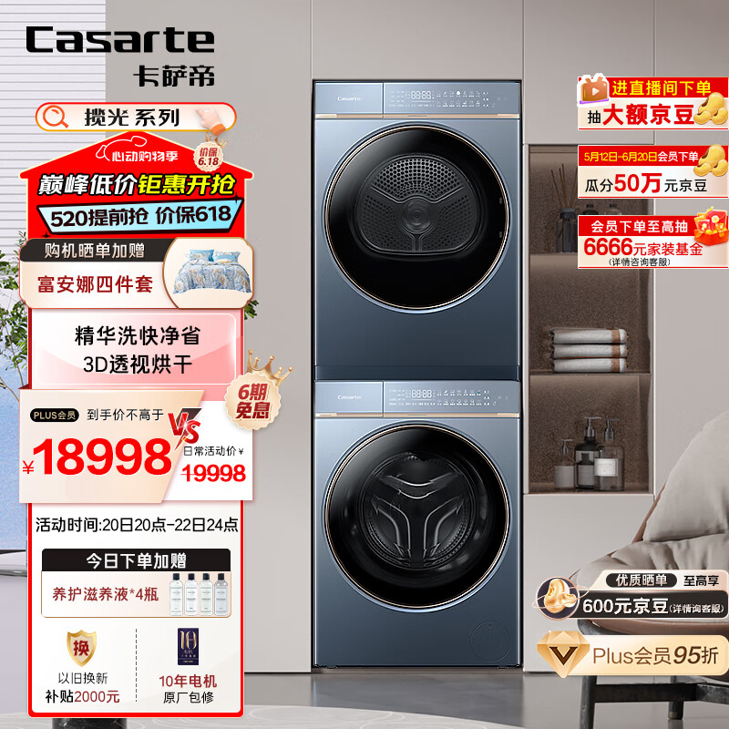 卡萨帝(Casarte)揽光L7洗烘套装 10KG精华洗滚筒洗衣机全自动+双擎热泵烘干机家用组合 3D透视 以旧换新12L7+12FL7价格:19998.00元!
