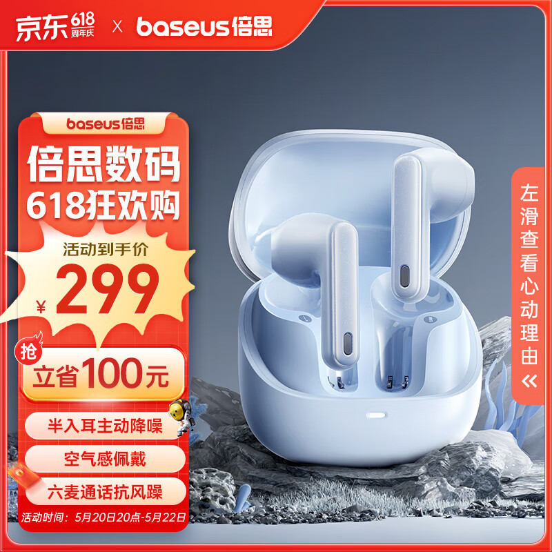 倍思(baseus)M3 真无线蓝牙耳机 主动降噪耳机 半入耳舒适降噪 30h长续航蓝牙5.3适用苹果小米华为手机 蓝价格:299.00元!