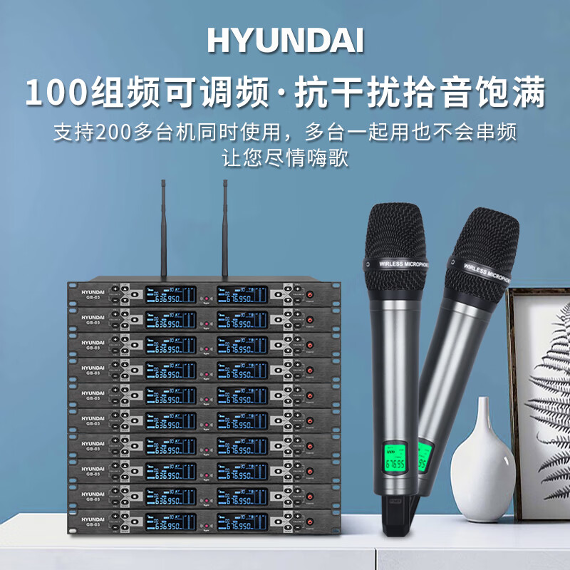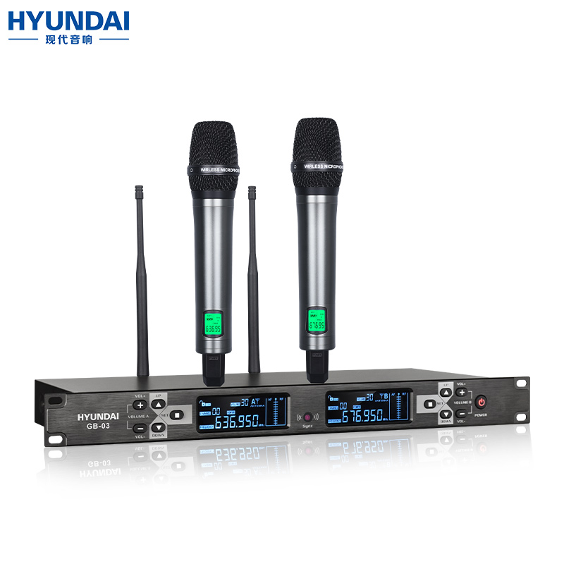 HYUNDAI现代无线话筒 U段无线手持一拖二 KTV婚庆舞台演出专用麦克风 GB-03无线防串频麦克风价格:899.00元!