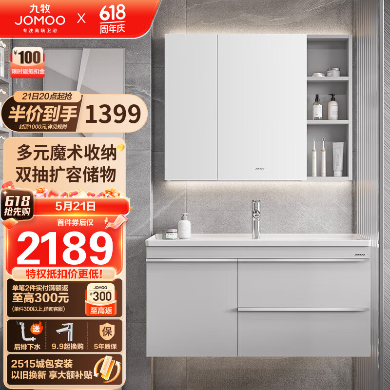 九牧(JOMOO)大尺寸浴室柜卫生间洗漱洗脸洗手盆组合套装柜100cm A2704-127Y-1价格:2849.00元!