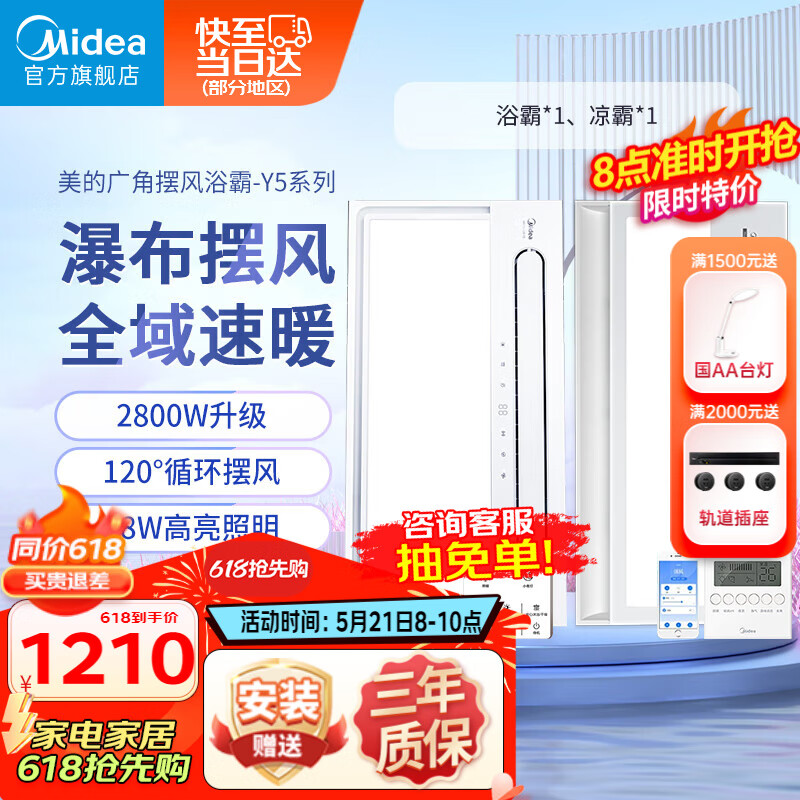 美的(Midea)浴霸瀑布摆风全域速暖浴室取暖器卫生间暖风机灯集成吊顶触摸款价格:1310.00元!