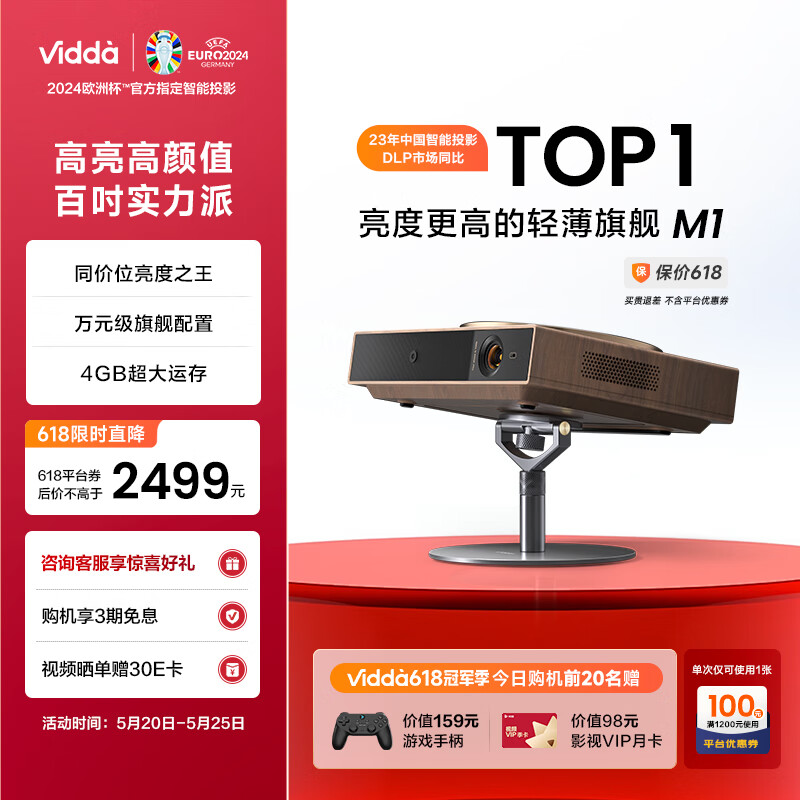 Vidda M1 海信投影仪家用 轻薄旗舰便携智能投影机(万元级CPU 同级别更高亮 Vi-AI智能校正 4G大运存)价格:2699.00元!