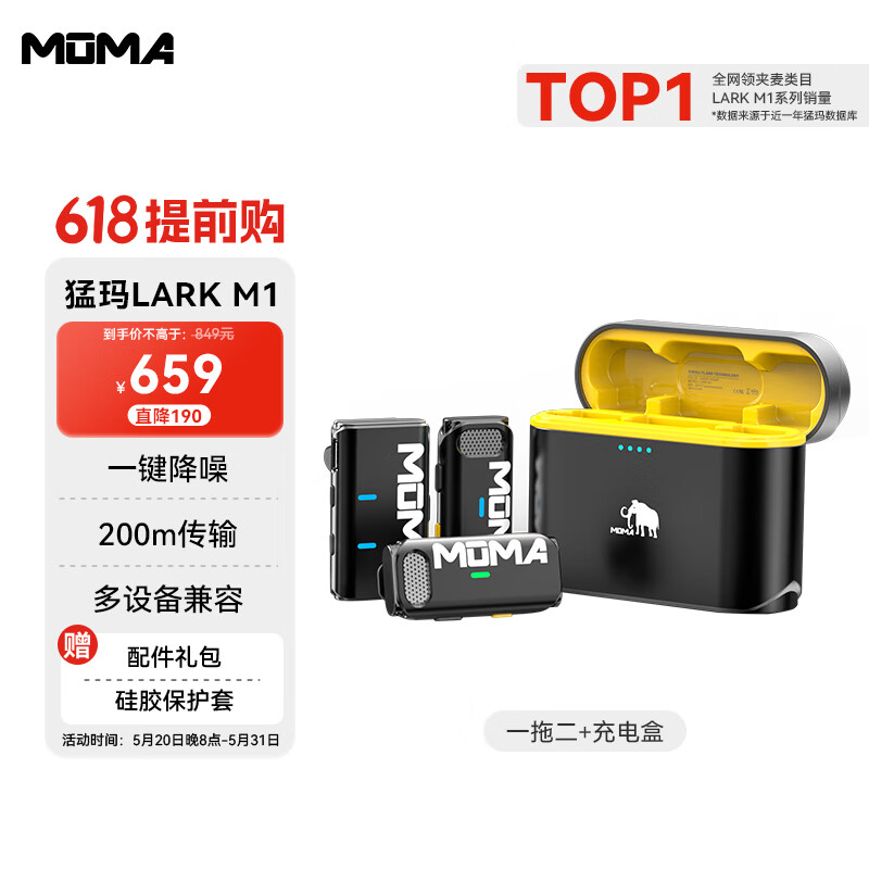猛玛(MOMA)无线麦克风领夹麦克风猛犸larkm1一拖二小蜜蜂vlog采访户外直播录音手机单反收音麦 LARK M1价格:659.00元!