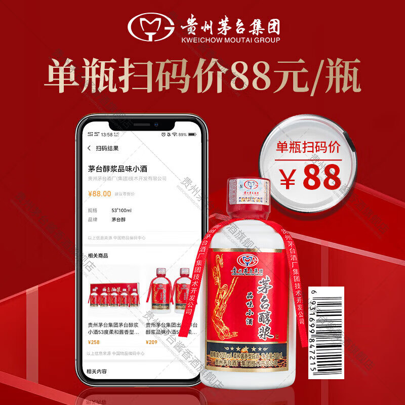 茅台醇浆品味小酒婚宴喜酒53度酱香型白酒整箱珍品100ml*24瓶过年送礼价格:1063.00元!