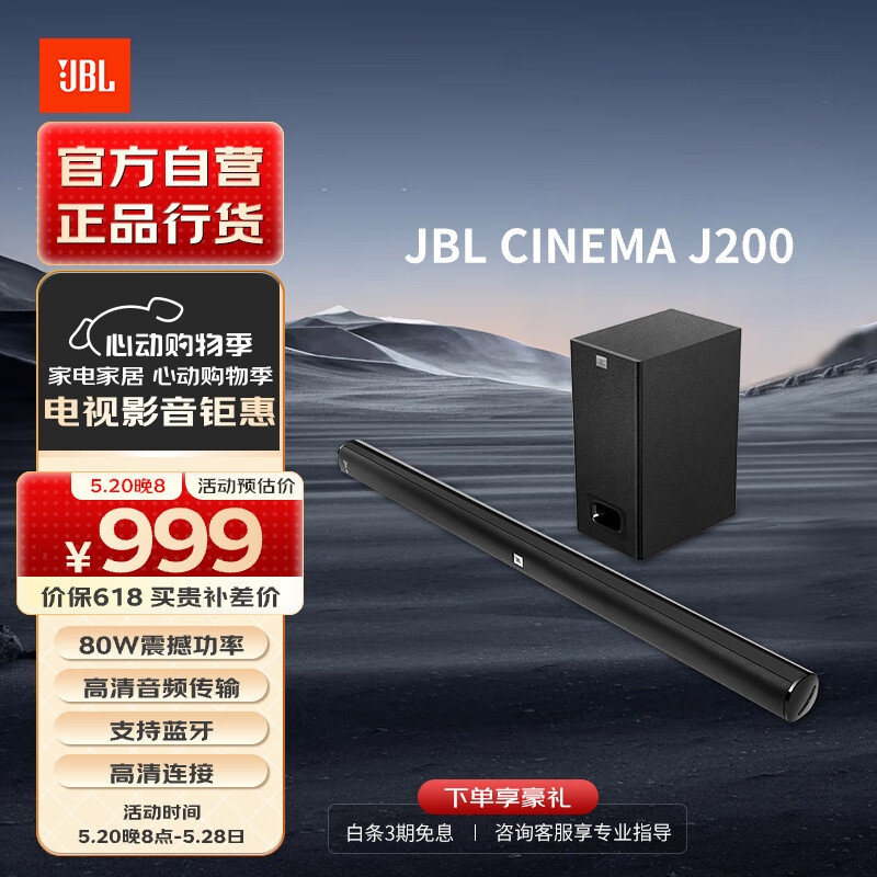JBL CINEMA STVJ200回音壁电视音响 2.1声道家庭影院soundbar 家用无线蓝牙电脑音箱价格:999.00元!