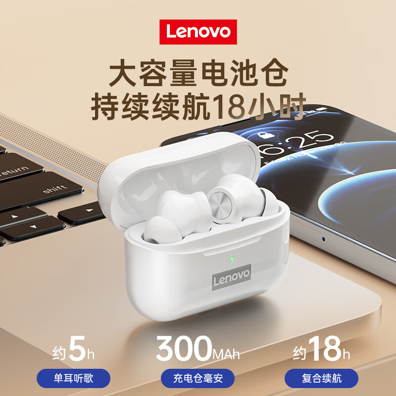 联想(Lenovo)【千元机专业降噪】无线蓝牙耳机 入耳式运动音乐游戏低延迟蓝牙5.2 通用苹果安卓手机 LP70白色价格:199.00元!