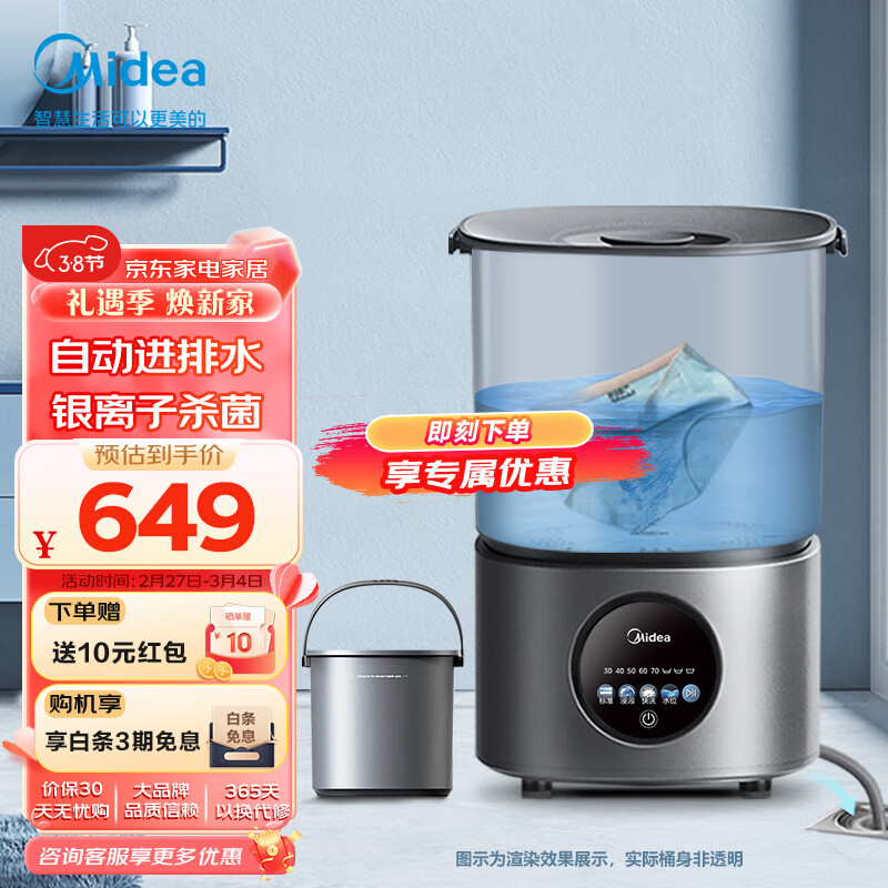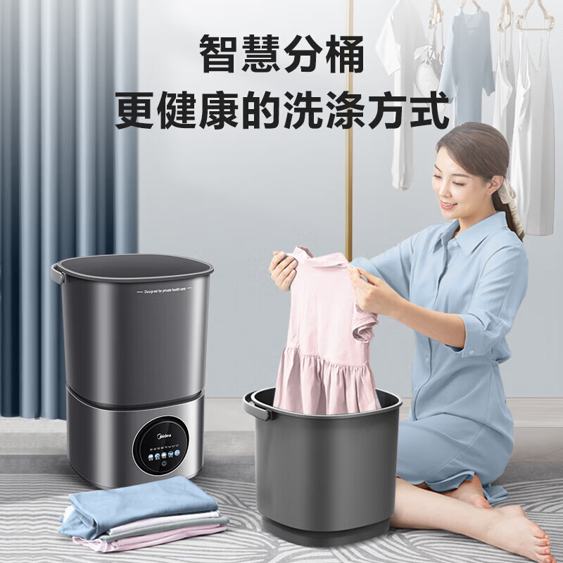 美的(Midea)内衣内裤分桶洗衣机便携式婴儿童衣服清洗机1.5KG触控迷你洗袜子神器 (一机两桶)MFB15-I32S价格:649.00元!