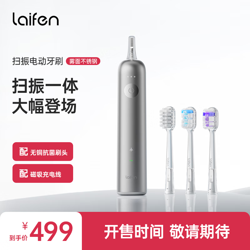 laifen徕芬科技下一代扫振电动牙刷 成人净齿护龈送男士礼物 莱芬未来感纳米注塑工艺 雾面不锈钢价格:900.00元!