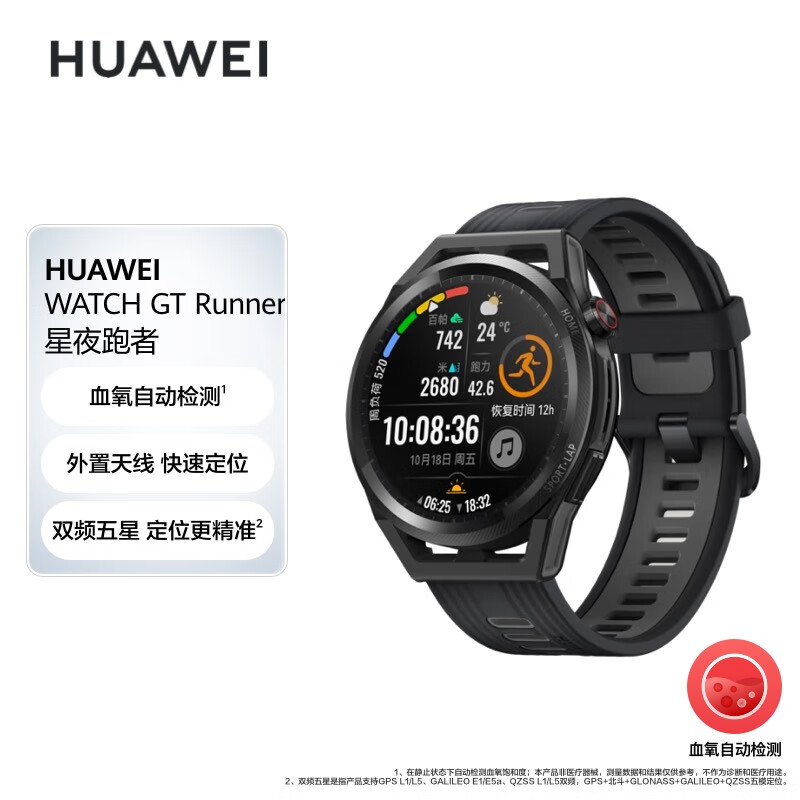 华为HUAWEI WATCH GT Runner 黑色硅胶表带 46mm表盘 华为手表 运动智能手表 精准定位 蓝牙通话 血氧检测价格:999.00元!