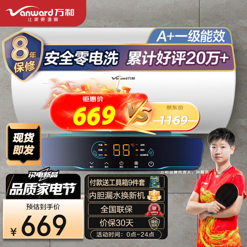 万和(Vanward)50升电热水器一级能效家用储水式智能断电速热高温杀菌洗澡机E50-Q2WY10-20价格:669.00元!