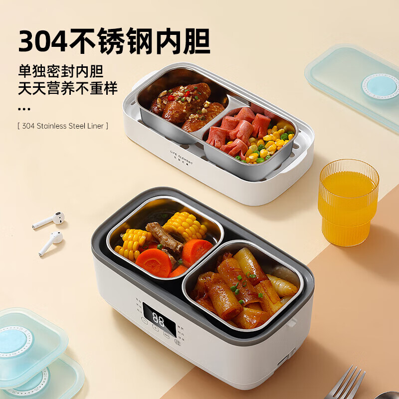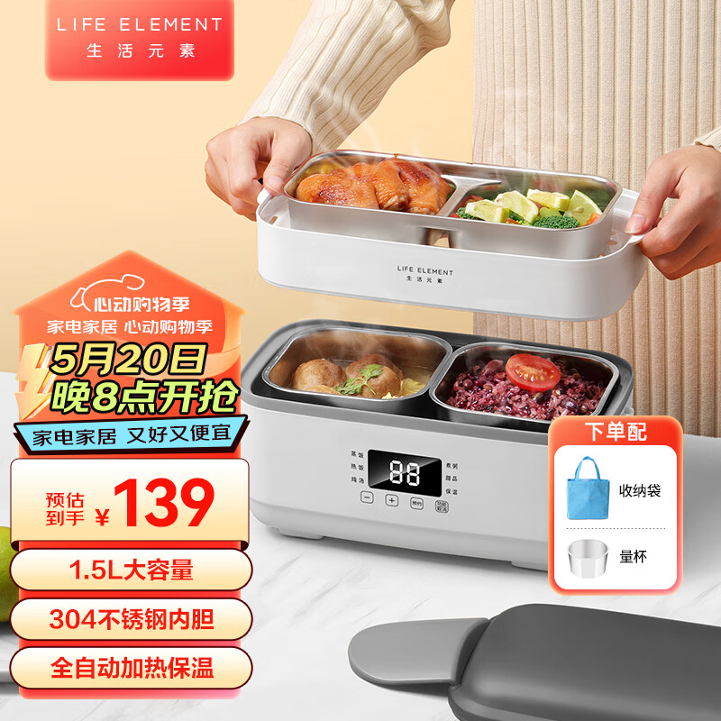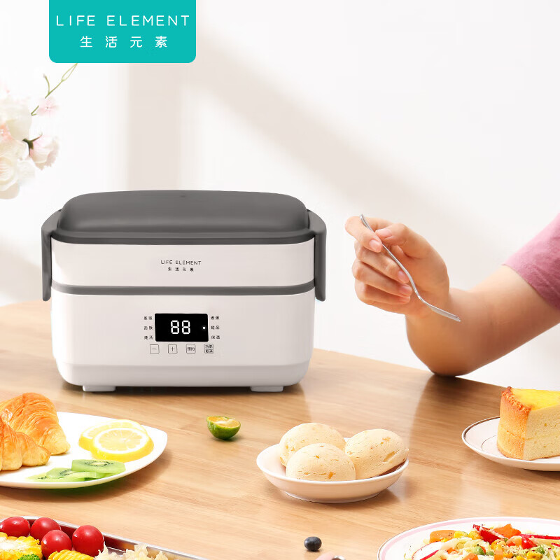 生活元素(LIFE ELEMENT)电热饭盒 插电加热智能保温 办公室热饭神器 双层1.5L不锈钢内胆 密封保鲜不串味 F36价格:139.00元!