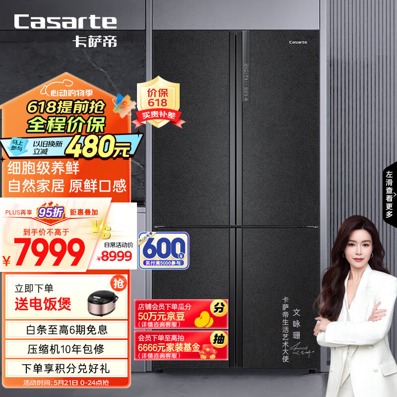 卡萨帝(Casarte)635升原石系列四开门十字四开门冰箱一级能效无霜变频家用三系统超大容量BCD-635WVPAU1价格:8799.00元!