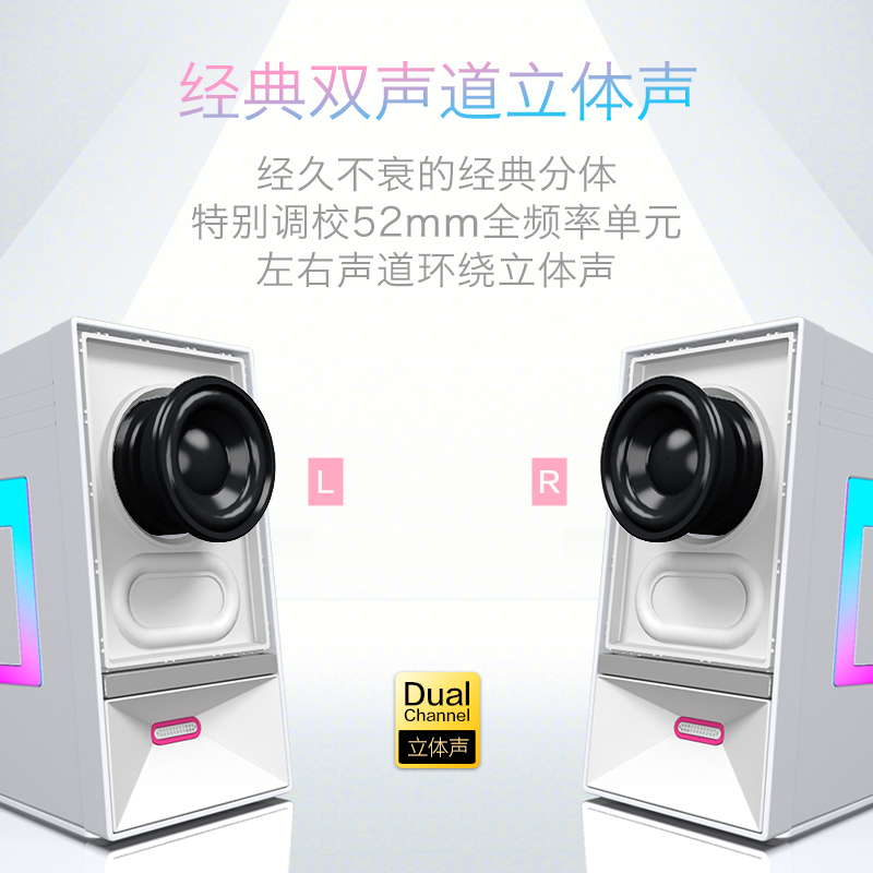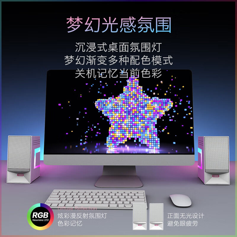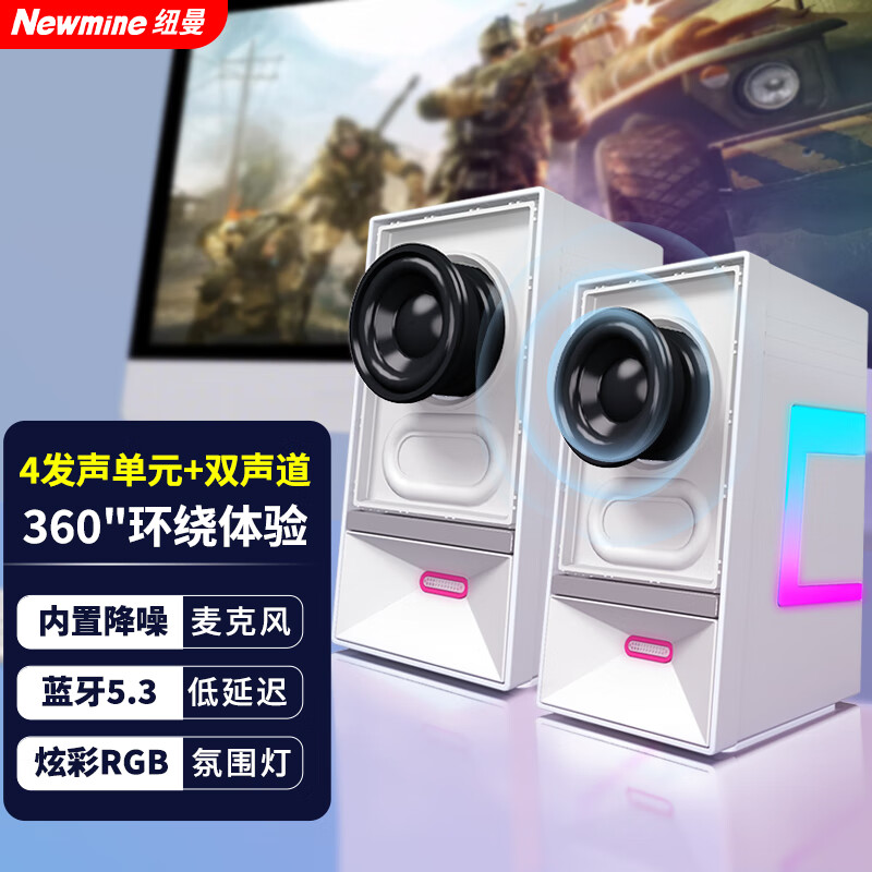 纽曼(Newmine)V4 电脑音响音箱 蓝牙5.3台式机笔记本内置麦克风炫彩RGB氛围立体声家用桌面对箱 白色价格:139.00元!