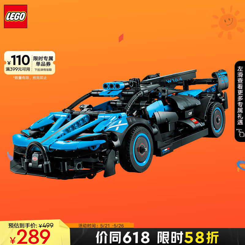 乐高(LEGO)积木机械组系列42162布加迪Bolide不可遥控男孩玩具520情人节礼物价格:399.00元!