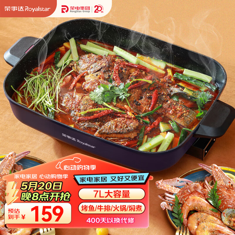 荣事达(Royalstar)电火锅家用火锅锅多功能小电锅多用途锅7L大容量电热锅煮面锅泡面锅烤肉锅电煮锅 HG16F8价格:149.00元!