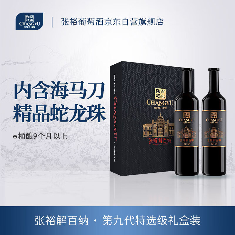 张裕 九代特选解百纳蛇龙珠干红葡萄酒750ml*2瓶礼盒国产红酒送礼价格:268.00元!