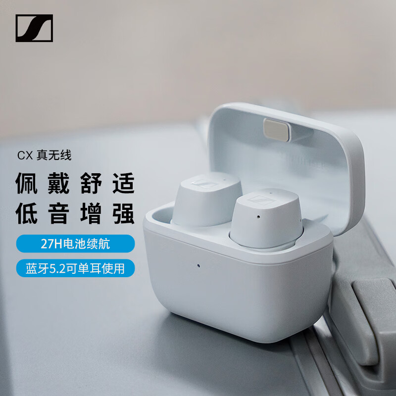 森海塞尔(Sennheiser)CX 真无线 音乐耳机蓝牙5.2 舒适佩戴防水 入耳式耳机 白色价格:1099.00元!