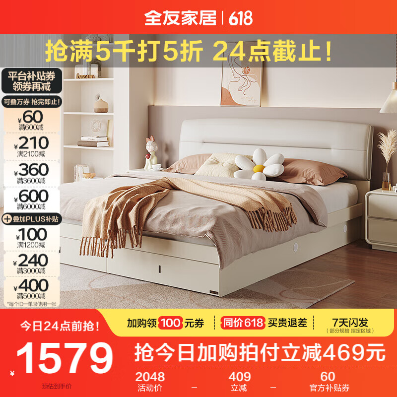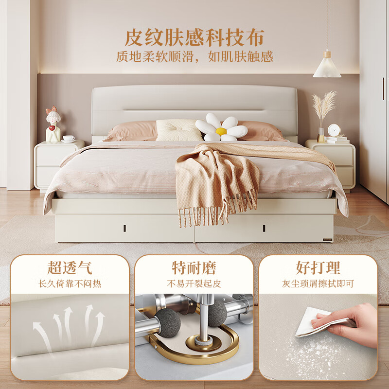 全友家居床现代奶油风科技布软包床轻奢主卧室床1.5x2米双人床DG10001价格:2048.75元!