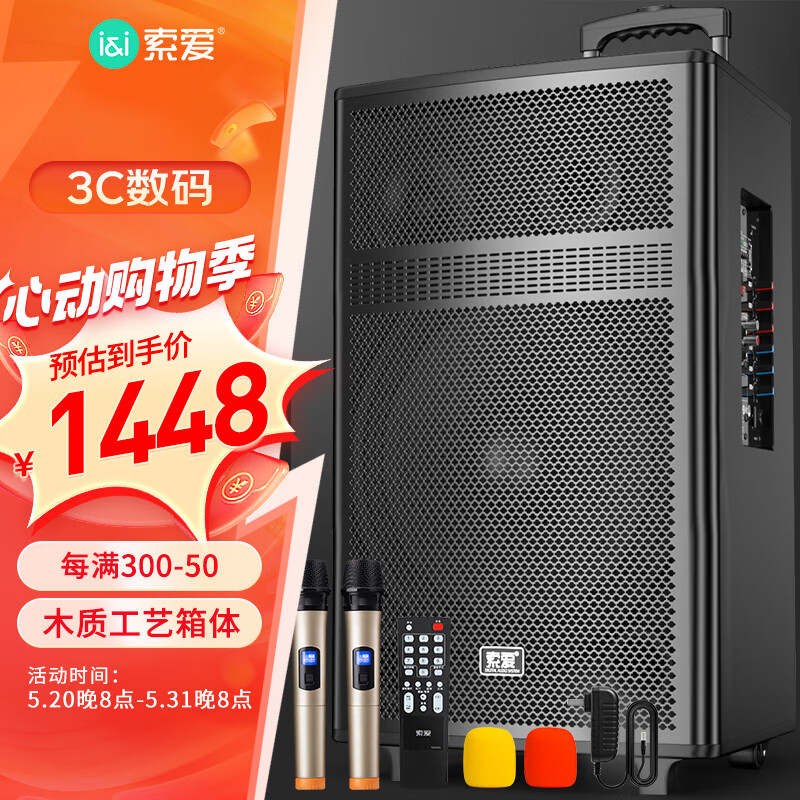 索爱(soaiy)ST-1705 15英寸三分频移动拉杆户外唱歌音箱蓝牙广场舞K歌音响扩音器唱歌跳舞低音炮喊话器价格:1698.00元!