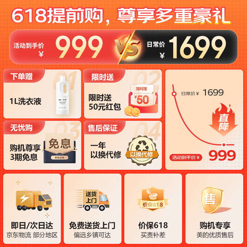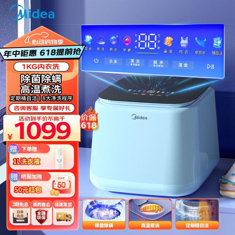 美的(Midea)内衣洗衣机全自动 高温煮洗内衣裤洗衣机 1公斤小波轮除菌除螨 小型母婴婴儿迷你洗衣机MNB10-01L价格:1049.00元!