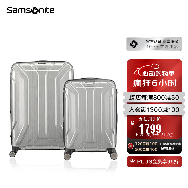 新秀丽(Samsonite)拉杆箱 时尚轻盈行李箱飞机轮旅行箱 TS7*25003银色20+28英寸套装价格:2249.00元!