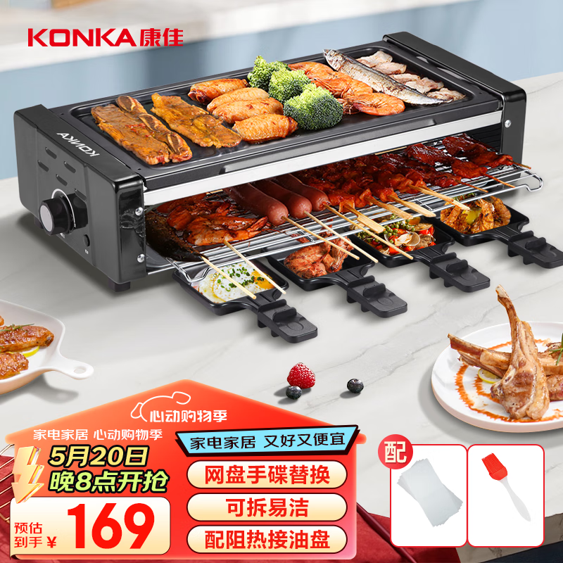 康佳(KONKA)电烧烤炉 多功能电烤盘烤肉机不粘烧烤架子家用无烟烤肉锅电烤炉 双层烤串机?KEG-W261B价格:169.00元!