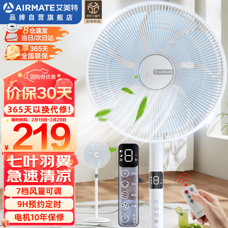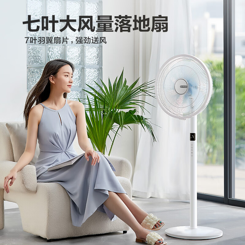 艾美特(AIRMATE)七叶7档家用遥控电风扇大风量空气循环摇头立式落地扇学生宿舍节能风扇轻音柔风定时落地式风扇 FS35-R70(7叶遥控升级款)白色价格:249.00元!