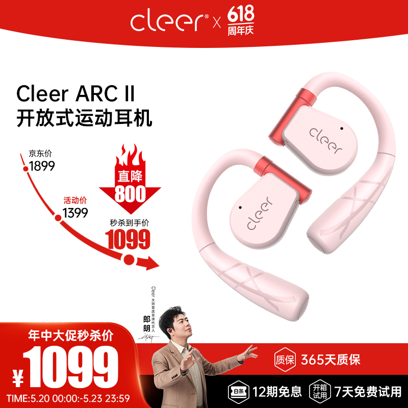 cleer任贤齐代言ARCII不入耳开放式智能运动无线蓝牙挂耳式跑步耳机骨传导升级适用华为苹果节日礼物 粉红色【运动版】价格:1099.00元!