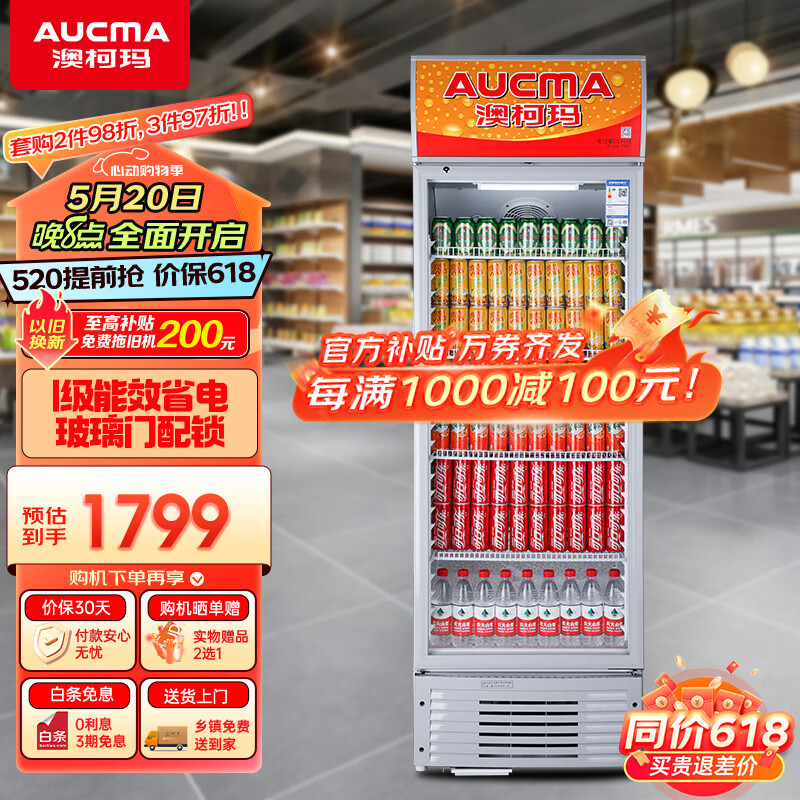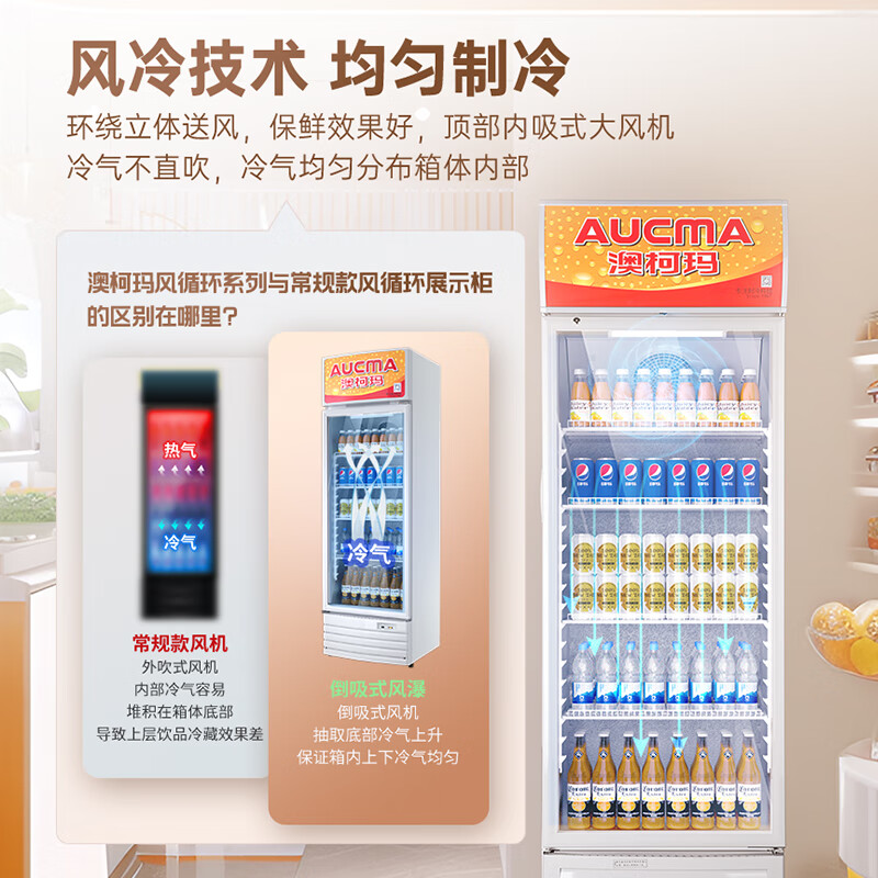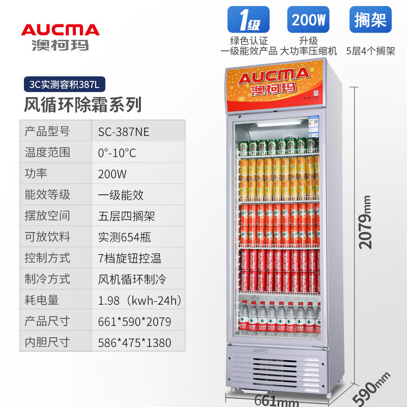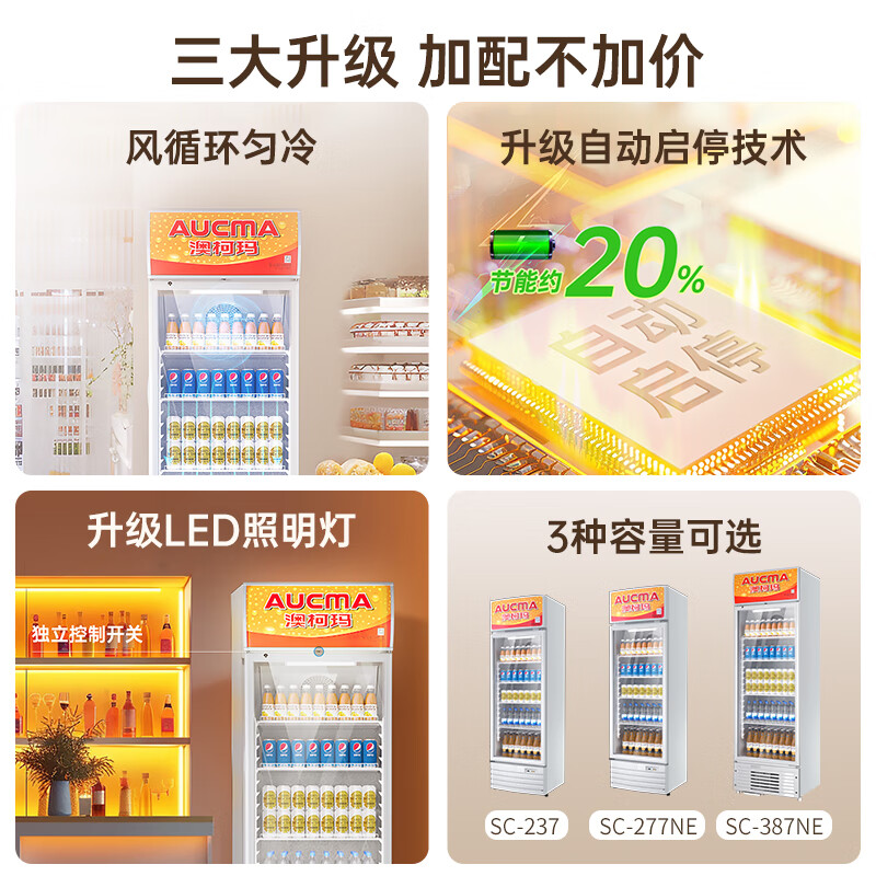 澳柯玛 387升大容量冷藏保鲜展示柜 立式单门商用冰箱 超市饮料啤酒冷柜 陈列冰柜 风循环匀冷SC-387NE价格:1899.00元!