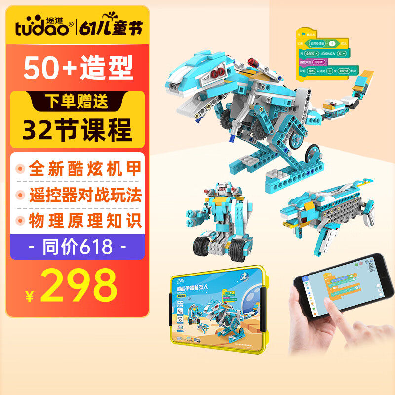 途道(tudao)超能争霸机器人编程套装编程机器人六一儿童节礼物电动科教积木拼装steam早教儿童玩具6-12岁男女孩生日礼物价格:298.00元!