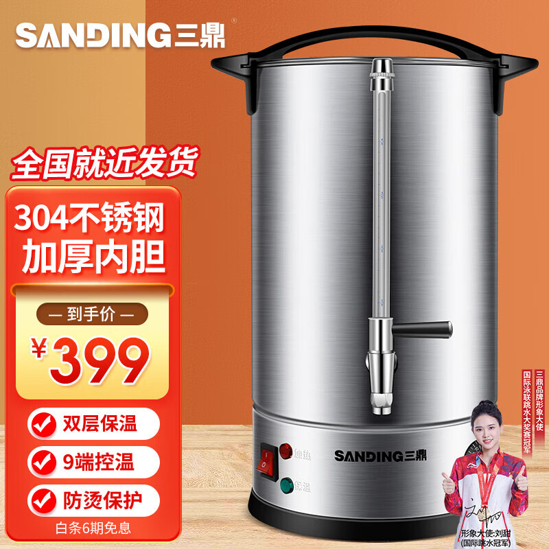 三鼎电热开水桶烧水桶商用开水器奶茶店家用加厚不锈钢保温热水桶大容量凉茶月子桶 SD-30L价格:399.00元!