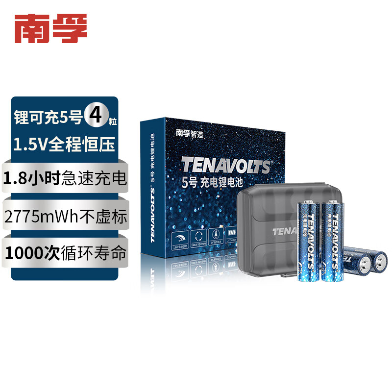 南孚5号充电锂电池4粒 1.5V恒压快充 TENAVOLTS 适用游戏手柄/VR 手柄/键鼠/吸奶器等 AA五号价格:118.98元!