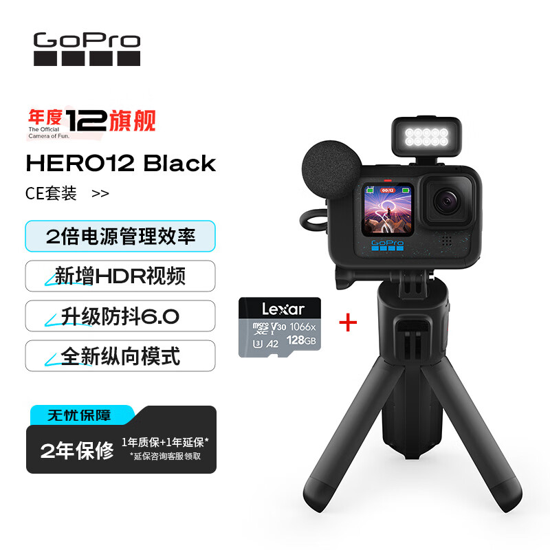 GoProH12 运动相机 户外摩托骑行防抖 水下潜水防水 滑雪照相机 CE套装加128G存储卡套组价格:4113.00元!