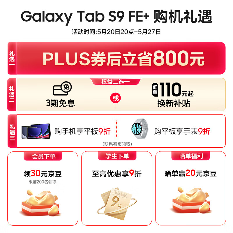三星(SAMSUNG) S9 FE+2023款Tab平板电脑12.4英寸8+128GBWIFI版护眼高清大屏IP68防水含Spen薄荷绿价格:3299.00元!