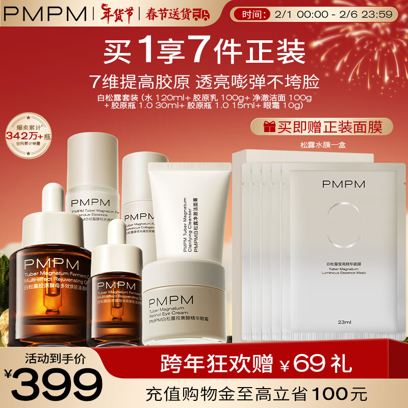 PMPM白松露胶原瓶水乳精华油紧致提亮套装礼盒送女友价格:469.00元!