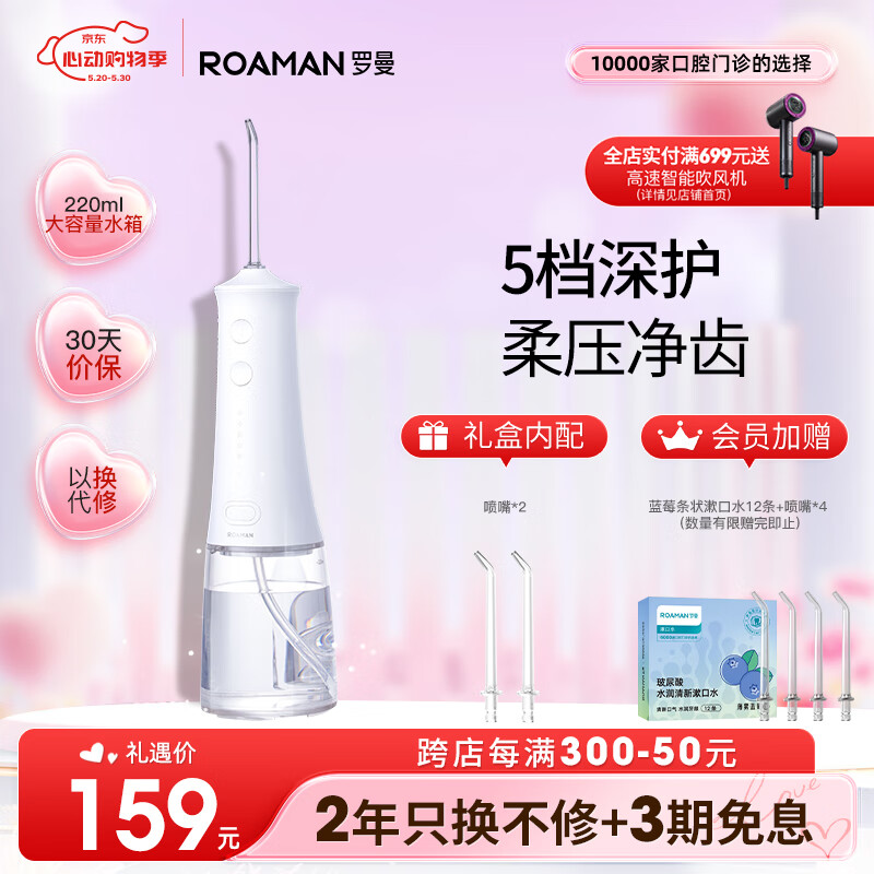 罗曼(ROAMAN)小宝塔冲牙器 洗牙器 水牙线 洁牙器 洁牙机 便携式冲牙器 台式冲牙器 W10珍珠白价格:159.00元!