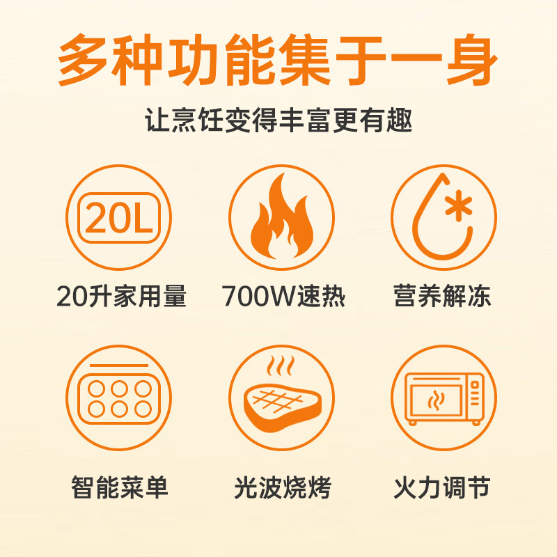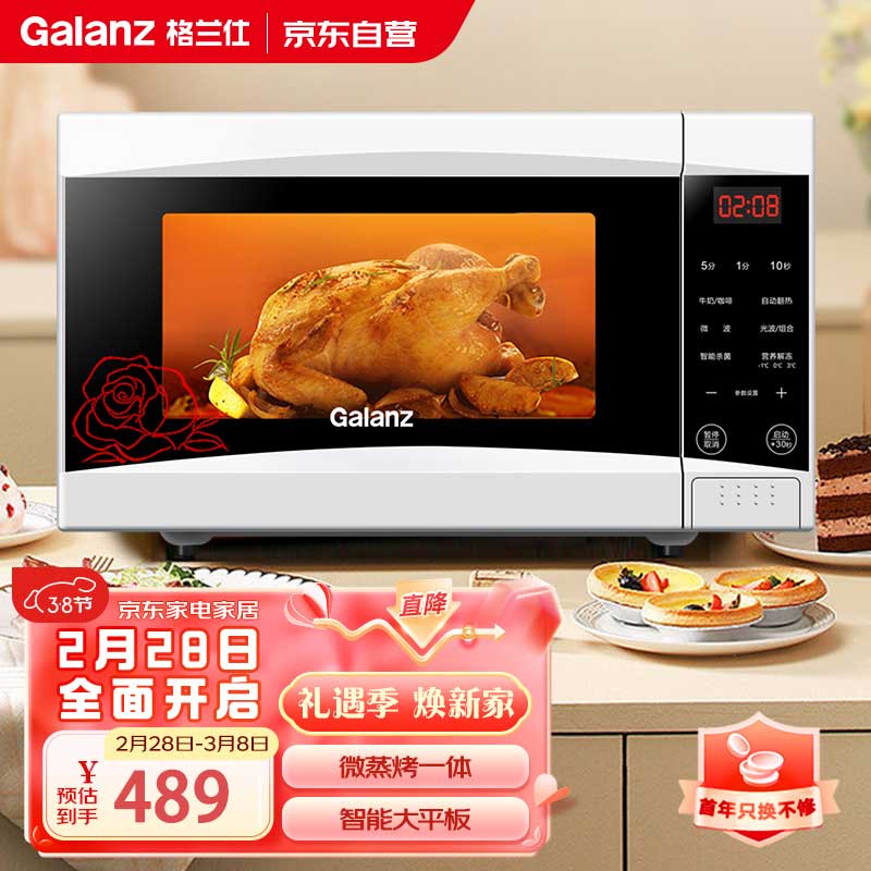 格兰仕微波炉智能20升家用 平板光波炉 速热微烤一体 700W 白色 G70F20CP-D2(S0)价格:489.00元!
