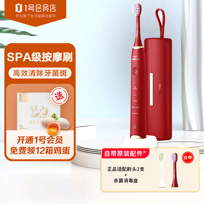飞利浦电动牙刷成人声波震动牙刷SPA刷按摩刷头 亮白护龈 5种模式 高效清除牙菌斑HX2491/02红色价格:319.00元!