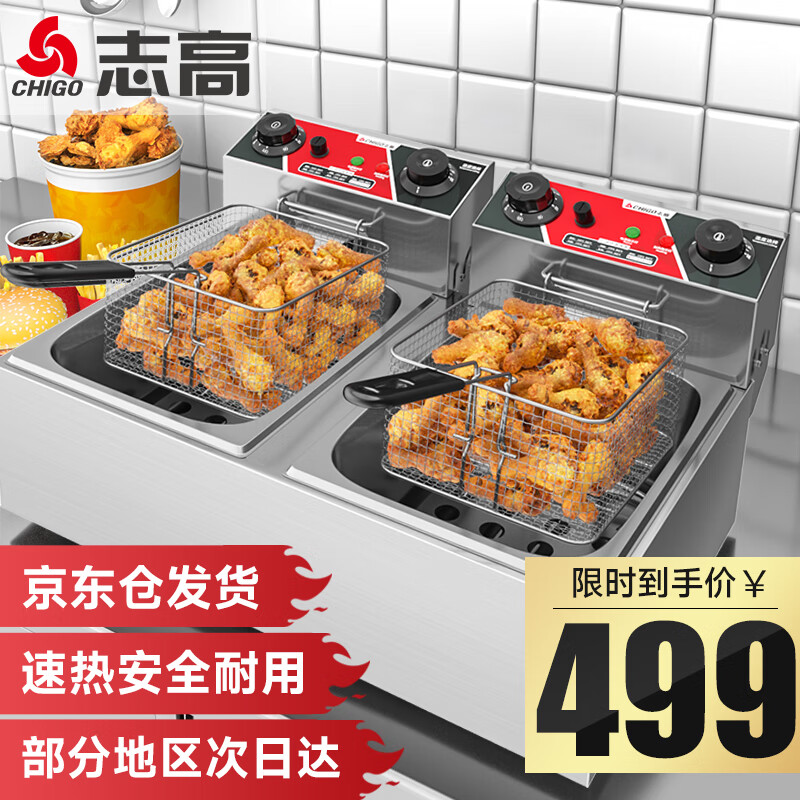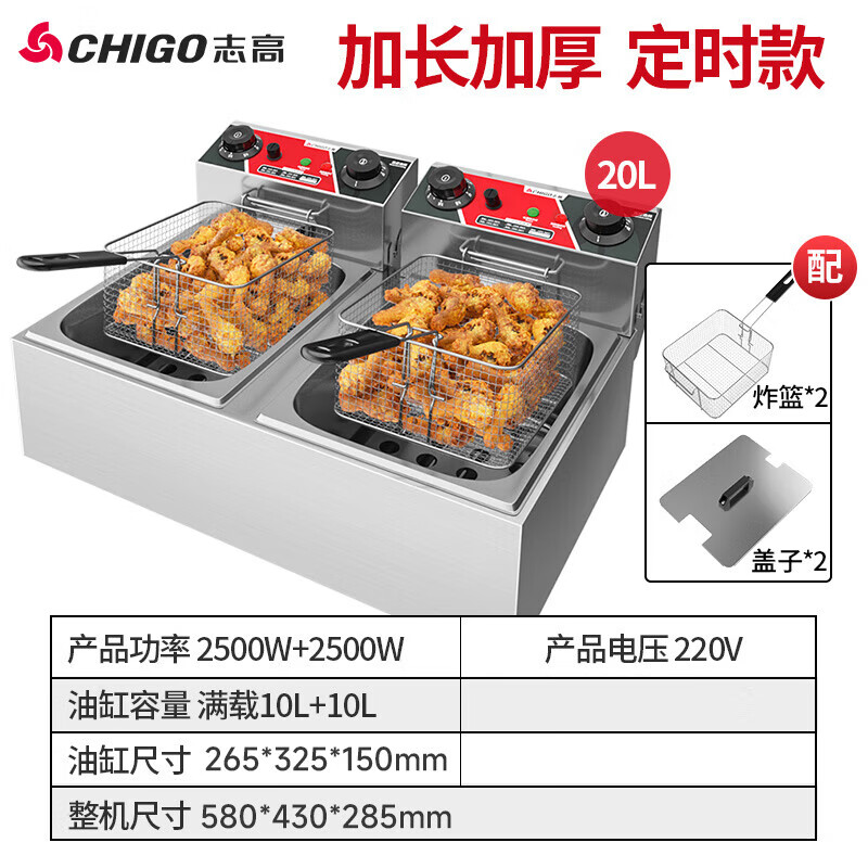 志高(CHIGO)电炸炉商用定时小吃油炸锅油炸机油条机薯条机家用电炸锅油炸炉炸串机企业采购 ZG-ASQ-82A双缸价格:499.00元!
