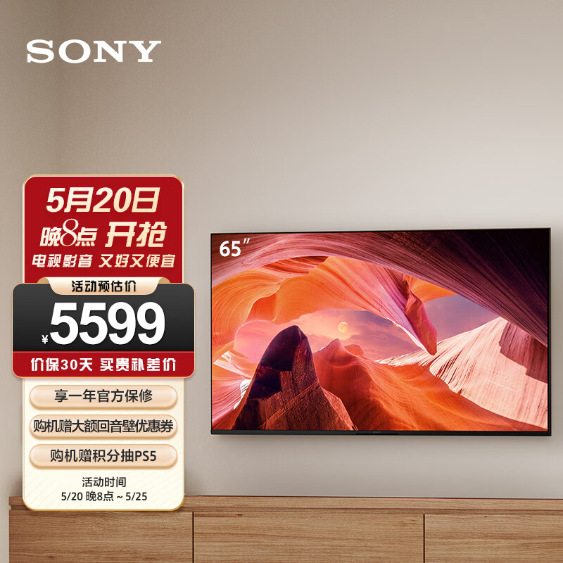 索尼(SONY)【官方直营】KD-65X80L 65英寸 广色域智能电视 X1画质芯片 杜比视界 4KHDR 液晶屏京配上门价格:5999.00元!