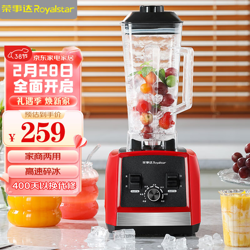 荣事达(Royalstar)破壁机 大容量碎冰机商用榨汁机多功能料理机家用沙冰机豆浆机搅拌果汁机RZ-1577A价格:259.00元!