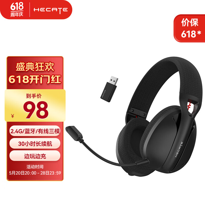 漫步者(EDIFIER)HECATE G1S雷霆版 2.4G/蓝牙/type-c无线蓝牙有线三模头戴式电脑电竞吃鸡游戏耳机耳麦 黑色价格:98.00元!
